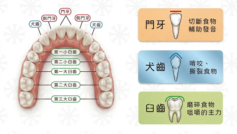臼齒的位置,本來就是負責「承重」的。你每天吃東西,真正出力的不是門牙,是後面這幾顆。少了一顆,力道就會開始亂跑——旁邊的牙齒會多承受一點、對咬的牙齒會慢慢往下長,久了整個咬合就開始歪。
